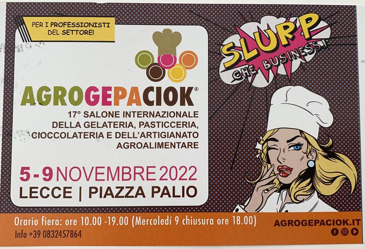 Dal 5 al 9 novembre 2022, a Lecce, in Piazza Palio, si tiene Agrogepaciok 2022, la manifestazione annuale più importante e attesa nell’intero Sud Italia dedicata al mondo dell’agroalimentare, dell’artigianato dolciario e della ristorazione. Con orario dalle 10:00 alle 19:00, questa fiera rappresenta un punto di riferimento imprescindibile per gli operatori professionali provenienti da tutto il Mezzogiorno e non solo.