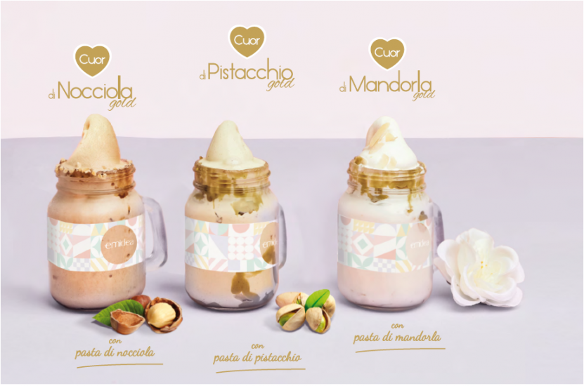 Cuor di Mandorla Gold: La dolcezza delicata e sofisticata della mandorla si sprigiona in una crema fredda dalla texture perfetta. Arricchita da pasta di mandorla, offre un'esperienza sensoriale morbida, fresca e incredibilmente appagante.