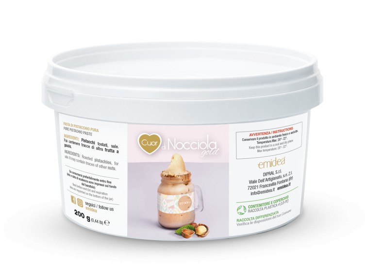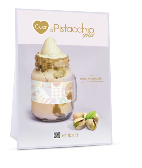 Cuor di Pistacchio Gold: Lasciati conquistare dal gusto inconfondibile e leggermente salato del pistacchio, infuso in una base cremosa e raffinata. L'aggiunta di pasta di pistacchio puro garantisce un colore vibrante e un sapore autentico e avvolgente.