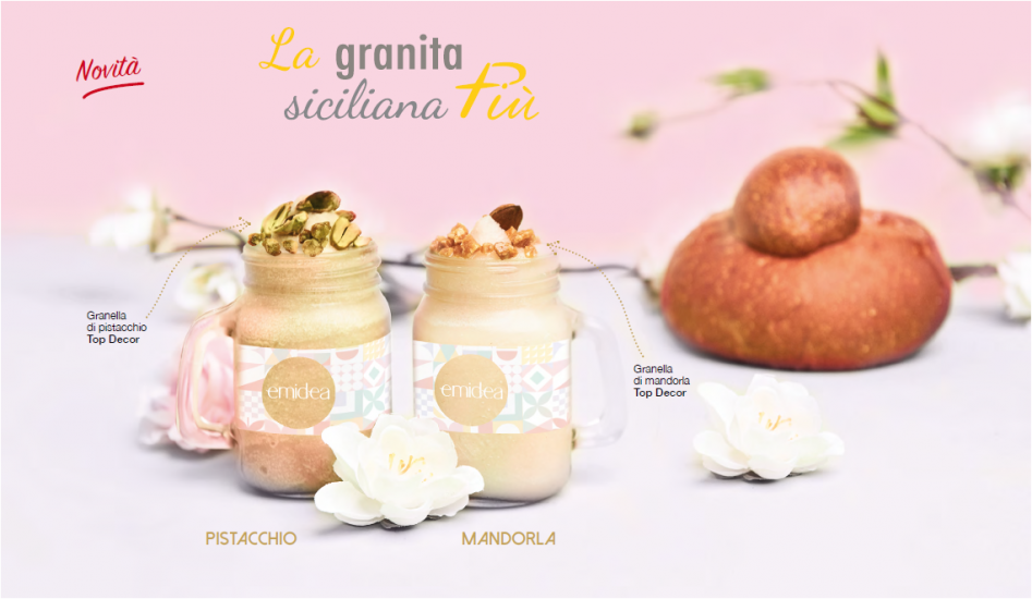 Scopri la nostra ultima creazione: La Granita Siciliana ''Più'' Emidea, un'esperienza autentica e superiore che eleva l'iconico dessert dell'isola a un nuovo livello. Abbiamo catturato l'essenza della tradizione e la proponiamo in una versione impeccabile, con una grana finissima e vellutata che si scioglie delicatamente al palato. Questa novità imperdibile è disponibile nei due sapori più amati e rappresentativi della Sicilia: Pistacchio e Mandorla.