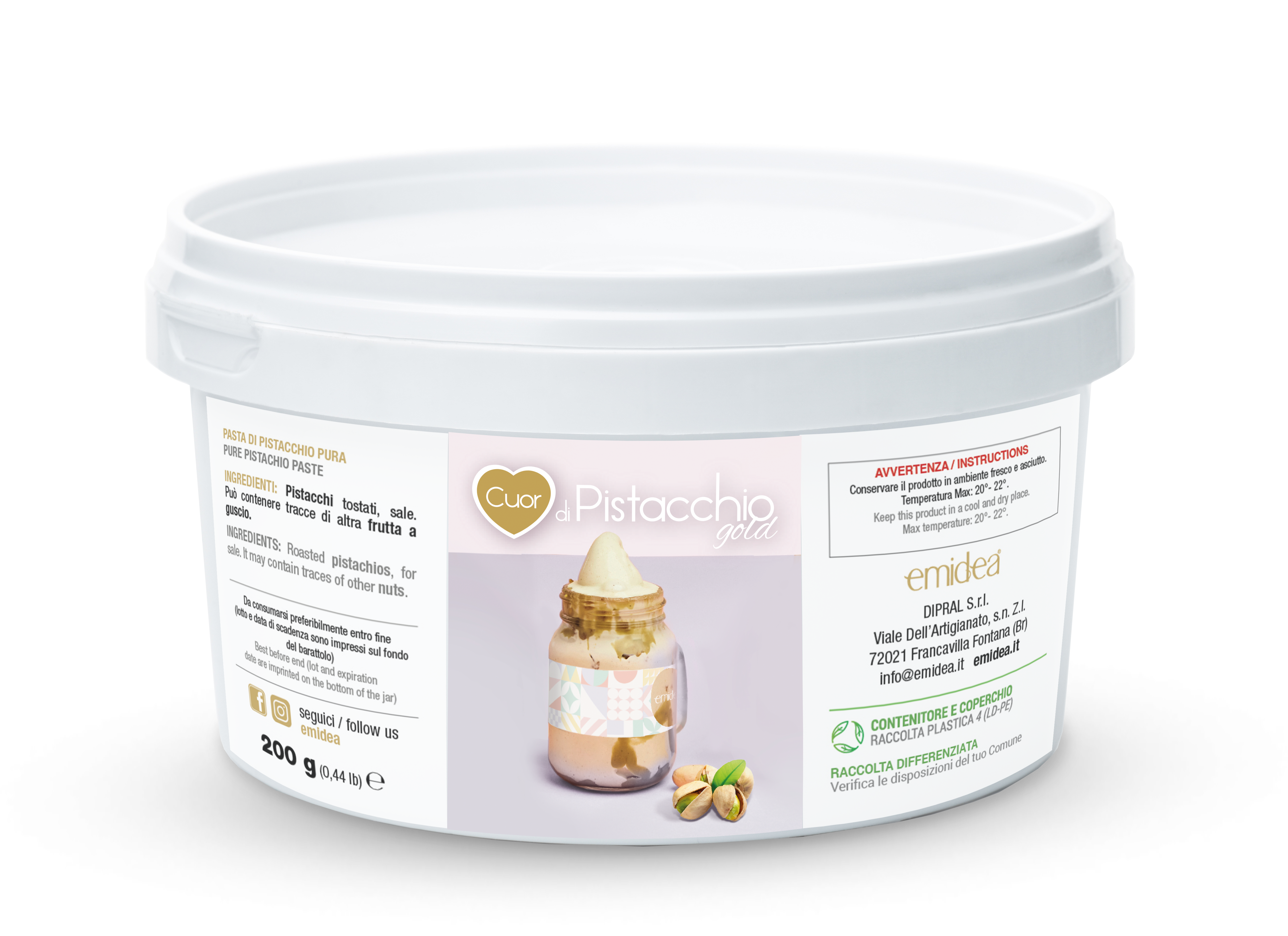 Gusto Pistacchio: Immergiti nel sapore inconfondibile e leggermente tostato del pistacchio, con la sua intensità aromatica e il colore vibrante che rendono ogni cucchiaino un'esperienza ricca e avvolgente.