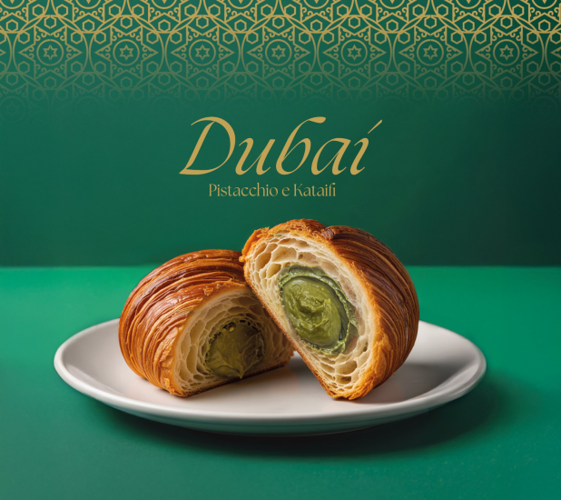 Preparati a un viaggio sensoriale senza precedenti con ''Dubai'', la nostra ultima creazione ispirata alle tendenze più golose del momento! Questa innovazione è un vero capolavoro di gusto e consistenze: unisce la ricchezza vellutata del pistacchio alla croccantezza dorata e leggera della pasta kataifi, dando vita a un connubio irresistibile che delizia il palato a ogni morso.