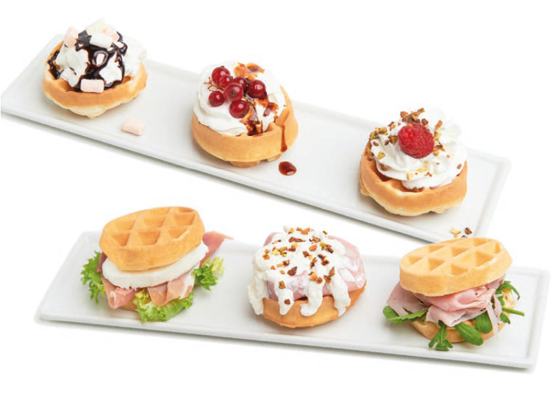 Scatena la tua fantasia con i nostri Mini Waffle! Perfetti per un'esplosione di gusto in formato mignon, questi mini waffle sono irresistibili sia nella versione dolce che salata. Ideali da servire come snack, finger food o per arricchire un buffet, offrono tutta la fragranza e la morbidezza del waffle tradizionale in un boccone.
