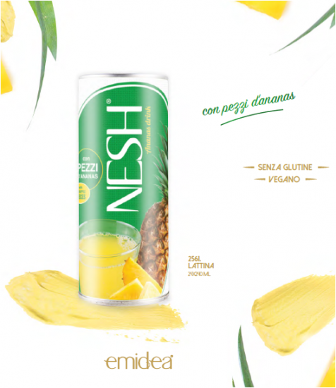 Con Emidea NESH Ananas, scegli un concentrato di gusto e benessere in lattina. È il drink che disseta, delizia e si adatta a ogni tua ispirazione!