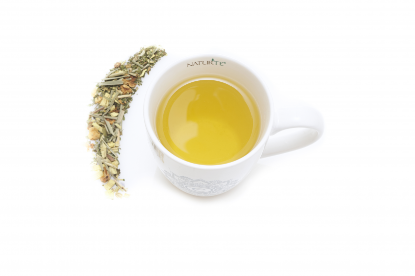 Miscela di matè, rooibos, lemongrass, pezzi di mela, semi di coriandolo, radici di liquirizia, foglie di verbena, rizomi di zenzero, foglie di menta piperita, semi di cardamomo, aroma di limone. Se associata ad un’alimentazione